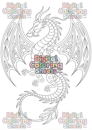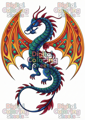 Experience a powerful blend of fantasy and mandala art with this Decorative Dragon Mandala Coloring Page. Featuring a beautifully symmetrical dragon surrounded by floral shapes, detailed wings, and intricate patterns, this advanced design is perfect for adult colorists who enjoy highly detailed artwork.