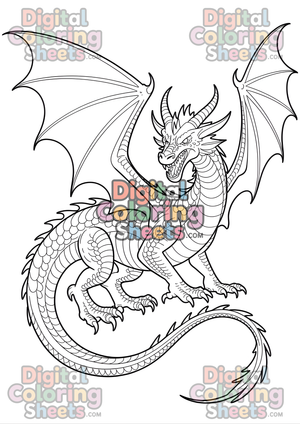 The dramatic fire-breathing pose, intricate scales, and bold outlines make this design ideal for markers, colored pencils, or digital coloring apps. Whether you're building a fantasy art collection or relaxing with a mindful coloring session, this dragon is sure to inspire your imagination.