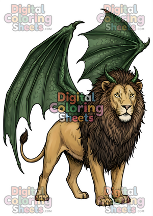 Whether you are a tabletop RPG fan looking for character inspiration, a parent looking for a cool activity for kids, or an adult seeking a relaxing creative outlet, this design is perfect. The intricate details of the lion's mane and the scales on the wings provide a satisfying coloring experience for all skill levels.